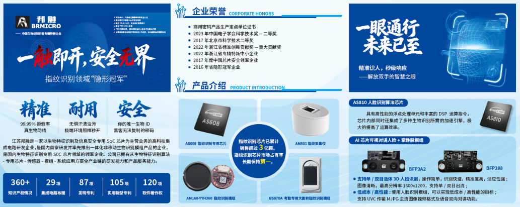 此次参展不仅是邦融微电子产品与实力的集中展示,更是一次与产、学、研、用各界伙伴深化连接的契机。作为国内首家研发并率先推出一体化非移动生物识别模组产品的企业,公司始终致力于以自主可控的核心芯片技术,赋能生物特征识别、机器视觉、汽车电子、AI机器人、宇航算力等高安全需求领域。